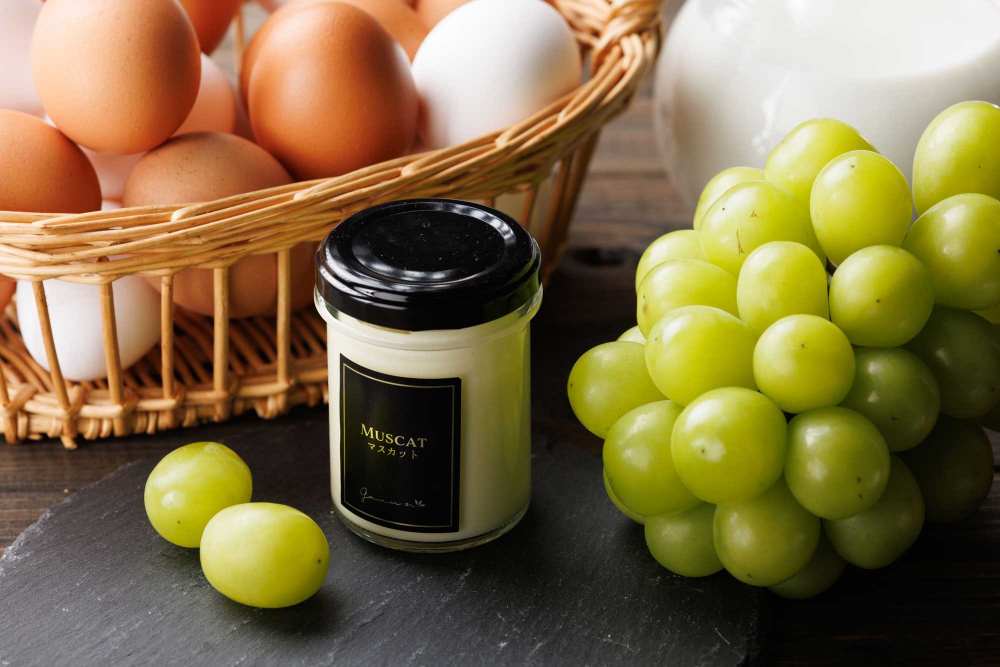 ジャンナプリン、カスタードプリン、苺プリン、白桃プリン、マスカットプリン、ピオーネプリン